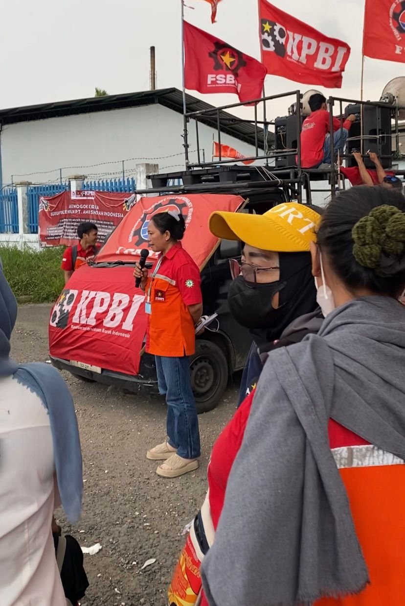 Sementara di luar, suasana tak kalah bergelora. Orasi-orasi politik terus menggema, bersahut-sahutan dengan panas terik Jakarta Utara. Musik sesekali diputar, menjadi jeda di antara ketegangan yang menggantung. Para buruh perempuan menunggu dengan cemas, berharap kabar baik dari dalam ruangan. Sebagiannya lagi, berjoget kecil untuk meredam kegelisahan. Tak lama kemudian, Ibu Rahma (Ketua FSBPI sekaligus buruh perempuan PT Amos) bersama Kak Lindah (Ketua basis PT Amos) pun keluar membawa kabar.